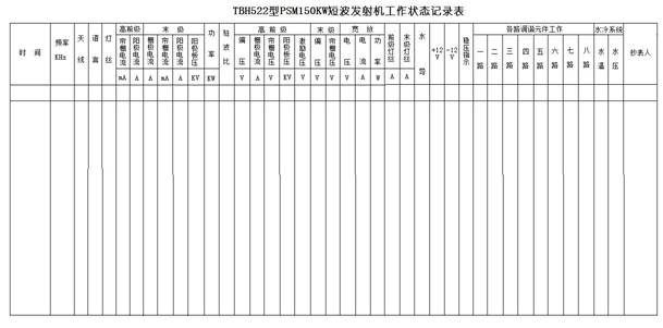 系統(tǒng)具備表單化管理功能,按照發(fā)射機(jī)和天線系統(tǒng)兩大部分進(jìn)行分類。設(shè)備運(yùn)行表單包括發(fā)射機(jī)運(yùn)行狀態(tài)表、調(diào)幅度記錄表、收測(cè)頻率記錄表、主控大廳設(shè)備運(yùn)行記錄表、天線運(yùn)行狀態(tài)表進(jìn)行詳細(xì)分類;巡檢類型按照定時(shí)巡檢、日常巡檢、換頻巡檢等進(jìn)行詳細(xì)分類。