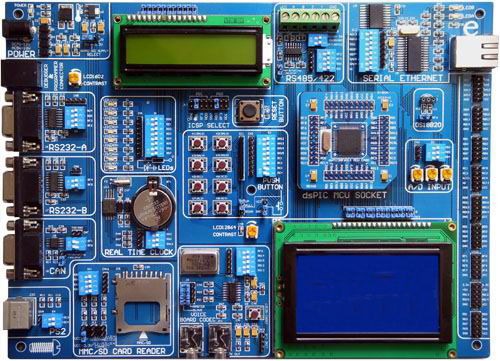 SHPIC3開發(fā)板只需要更換相應(yīng)的主控板,便可以支持dsPIC24系列,dsPIC30系列和dsPIC33系列16位單片機(jī)。