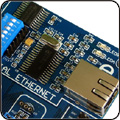 以太網(wǎng)控制器模塊--采用Microchip的ENC28J60芯片,通信完全符合IEEE802.3規(guī)格,高可達(dá)10M的通信速率,通過(guò)兩中斷功能SPI接口實(shí)現(xiàn)與主控制器通信. |