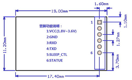 模塊的UART-RXD接口,輸入管腳,與外部控制器的TXD管腳相連接,接口電平為0~0.9*VCC。
